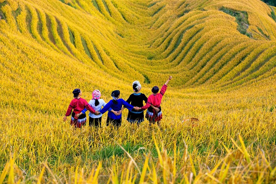 Em seguida, segue para os terraços de arroz de Longji, parando primeiro na aldeia Huang Luo Yao para assistir ao tradicional espetáculo do cabelo comprido, uma experiência cultural única. Depois, desfruta de uma caminhada de 2 horas pelos deslumbrantes terraços de arroz, onde os aldeões Yao e Zhuang cultivam a terra há gerações.