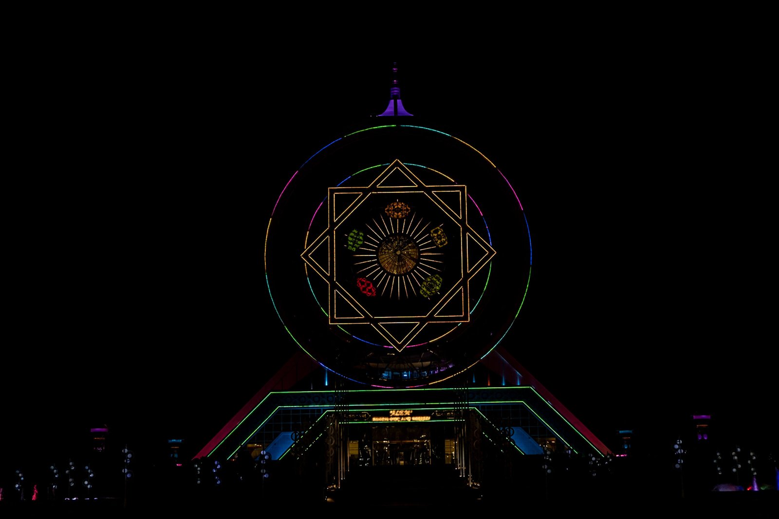 Ficamos até ao pôr do sol, quando as cores se tornam ainda mais intensas, e depois continuamos até Turkmenbashi para passar a noite.