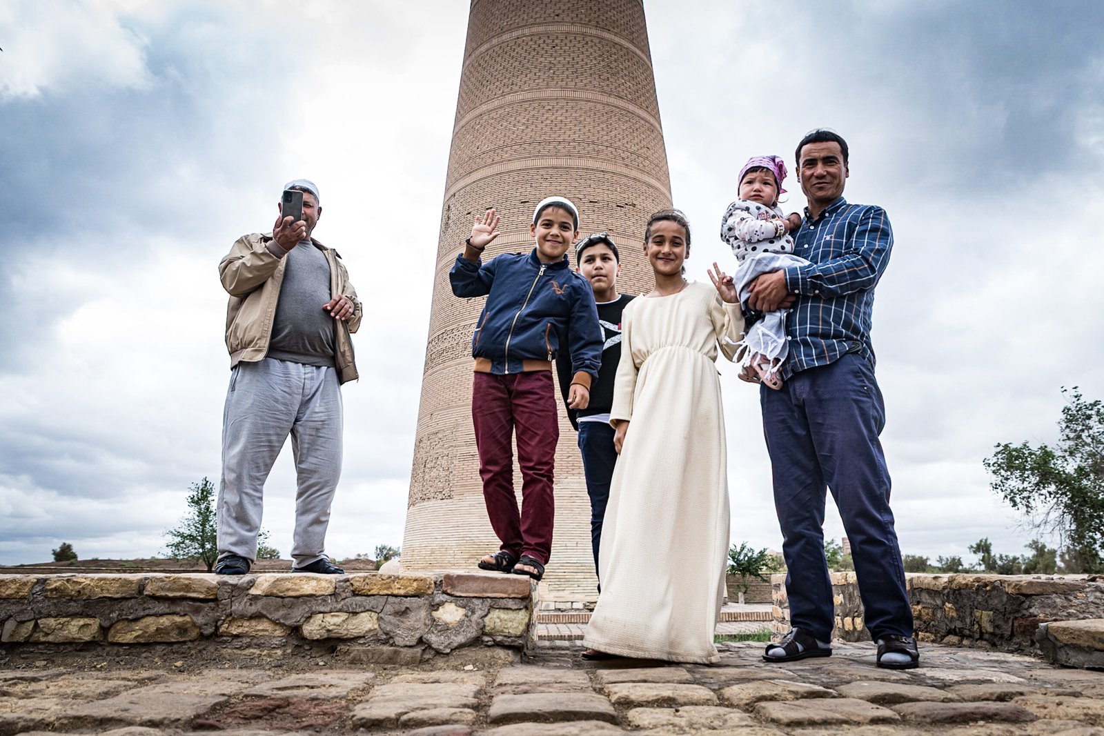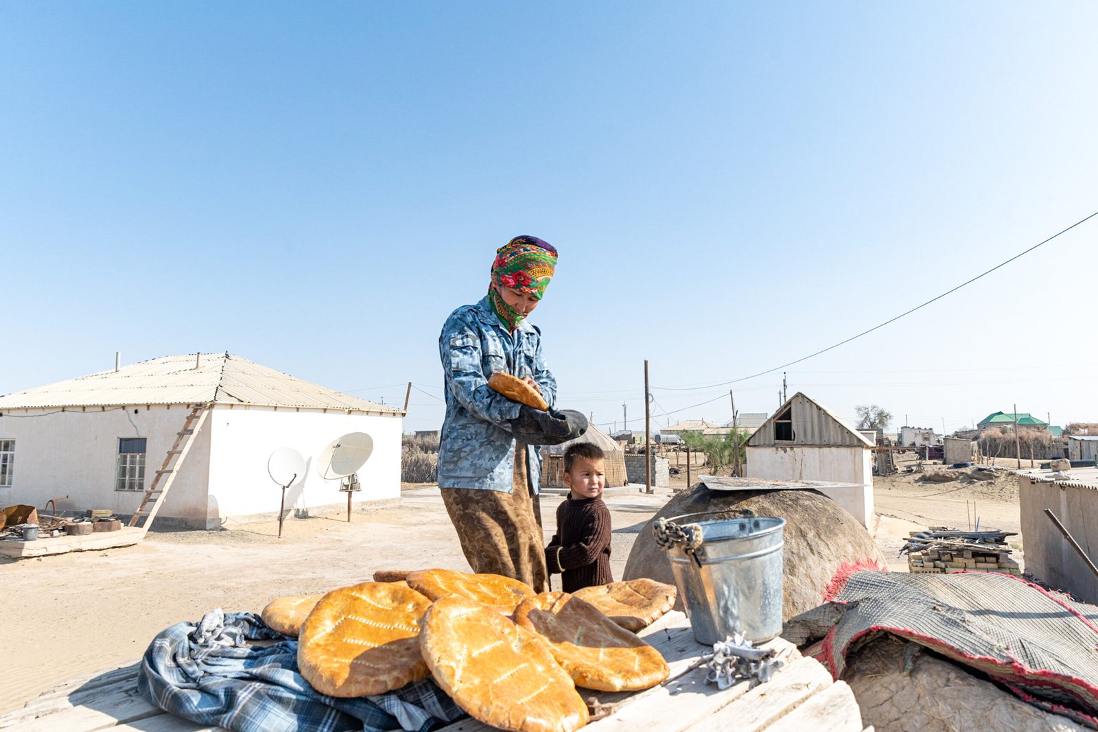 À tarde, dirigimo-nos para o deserto de Karakum, em direção à cratera de gás de Darvaza – um gigantesco sumidouro em chamas que arde há mais de 50 anos. No caminho, paramos em crateras de água e lama espalhadas pelas planícies do deserto. É um bom primeiro vislumbre da vasta estepe e da vida nómada no deserto.